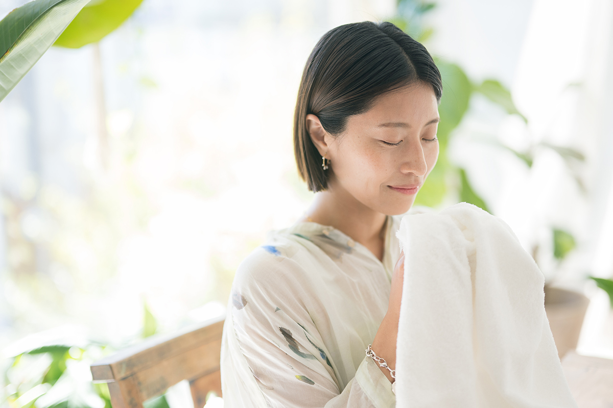 香りづけしたリネンやバスタオルに包まれたり、洗濯したての衣服をまとったりすることで、自分の中からふっとエネルギーが湧き出るような感覚を得られるはずです。