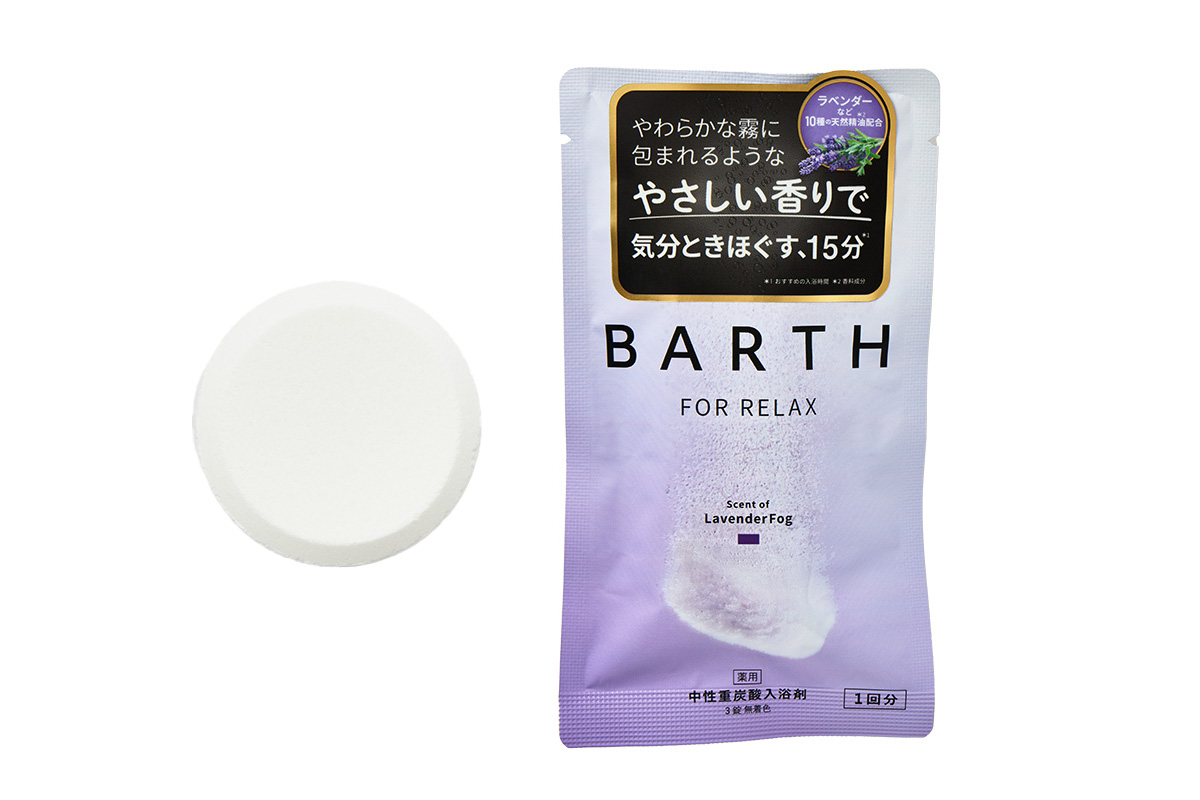 疲労回復を促進する中性重炭酸泉を忠実に処方設計。リラックス効果もあるラベンダーの香りを忍ばせた入浴剤。