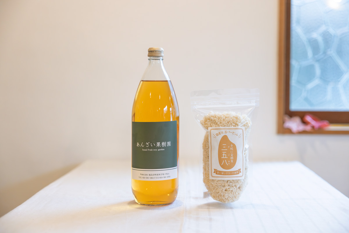 「福島とのご縁は、福島市の〈あんざい果樹園〉さんがはじまりでした。とあるイベントでの出会いをきっかけに親交を深め、いつしか季節ごとに訪ねる場所に。震災による安齋さん家族の暮らしの変遷を綴った『まよいながら、ゆれながら』を中川ちえの名義で出しました」