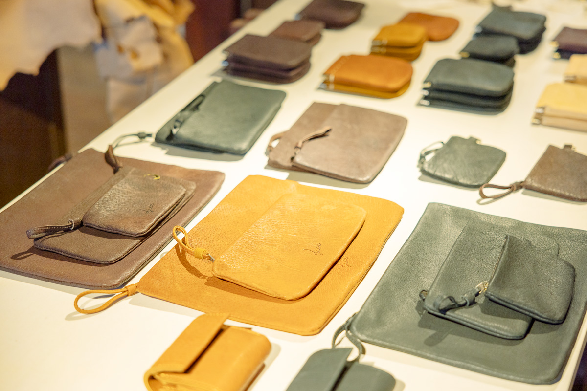 かつては駄菓子などを商う店として使われていた古民家を、補助金も活用して大きく改装。壁や床の塗装を地域住民や移住者コミュニティの知人が手伝ってくれたり、新聞記事で移住を知った郡山の方から工房の道具や材料を譲り受けたり。周りに助けられながら2024年に自身のブランド〈ZICA(ジカ)〉を始動する。「土地の資源を活かしたい」という思いから、地域で鳥獣害対策にあたる猟師からイノシシ、クマ、シカなどを譲り受け、自ら裏打ちを施したあと、東京のなめし革工場で仕上げてもらった革を鞄や小物作りに使う。