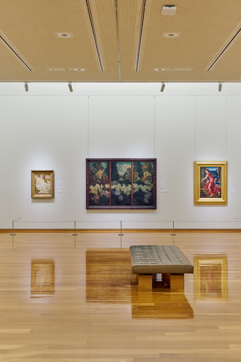 このホールと同じように、屋根の形がそのまま天井に現れた2階展示室では年4回ほど常設展を開催。画家・関根正二ら福島県出身の作家を中心に、フランス印象派や20世紀アメリカの絵画など4,400点以上ある収蔵品の中から、毎回100点ほどが展示される。