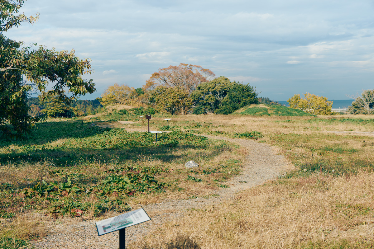 常磐自動車道・浪江ICから車で約15分。浦尻海岸を見晴らす高台に浦尻貝塚縄文の丘公園はある。ここは、縄文時代の集落遺跡「浦尻貝塚」のために整備された野外博物館。約7haの敷地では貝塚のほか、住居や墓、木の実を貯蔵する穴などが発掘されている。「まずはガイダンス棟で情報収集するのがおすすめです」と南相馬市教育委員会文化財課の林紘太郎さん。