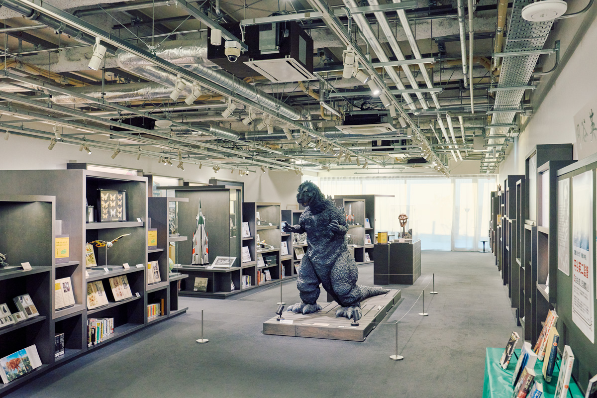 2019年開館。図書館、生涯学習・市民活動施設、子育て支援施設、〈円谷英二ミュージアム〉を有する5階建て。