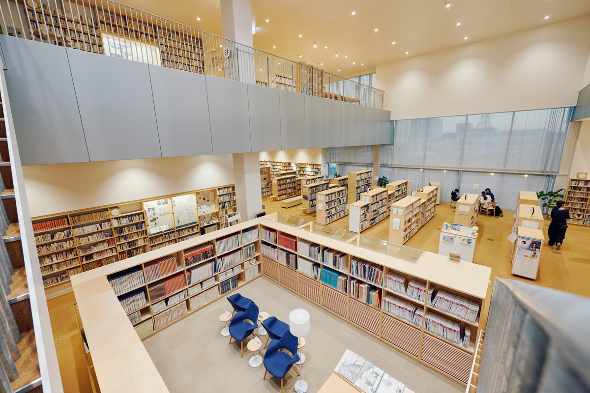 愛称は「テッテ」。震災で被害を受けた中心市街地再生のため、人々が「手と手」を結んで作った市民の場だ。図書館を中心に、ミュージアムや公民館の機能を融合させた空間は複合文化施設のパイオニア。海外からの見学者も多いそうだ。見どころは、各階が“ずれながら”積み重なり、スロープや階段でゆるくつながっていること。