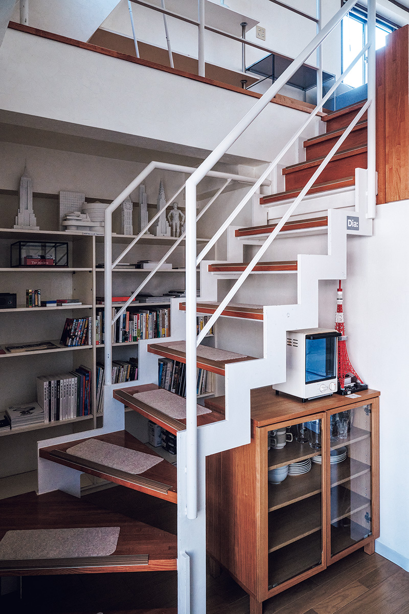 2年がかりで見つけた鉄筋4階建ての一軒家。一階がガレージ、2階がLDKで3階にふたつの寝室とバスルーム。ロフト付きの四階で民泊を営んでいる。「収益型マイホーム、略して〝シュウマイ〞と言うらしい。住み替えを決めたときから、プランに組み込んでいました」