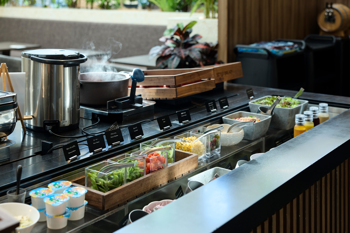 「クラブラウンジ」では、シェフ特製の焼きたてのオムレツや作りたてのエッグベネディクト、神戸ハイカレー、もちもちぱりぱり食感のタコスなど、しっかり朝食を食べたい方にもおすすめのメニューがずらり。