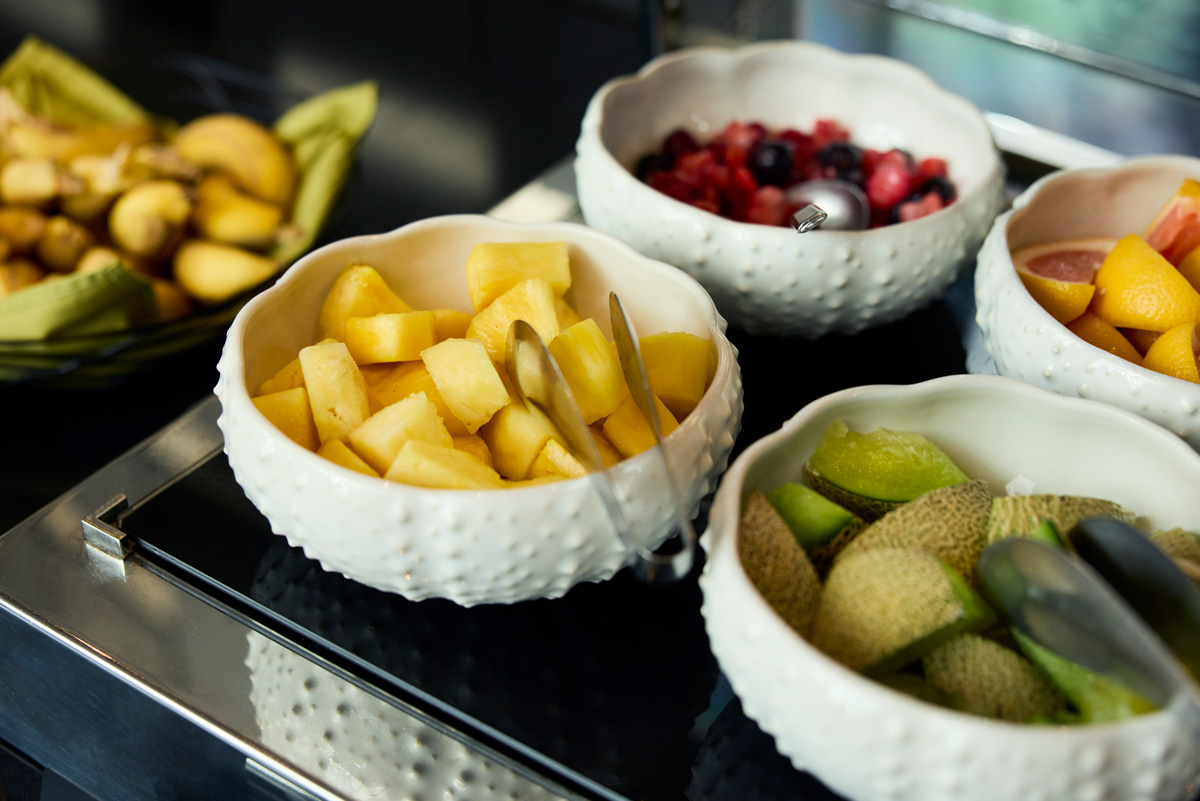 「クラブラウンジ」の朝食は大充実。フレッシュな野菜やフルーツをたっぷり盛り込んでサラダに。