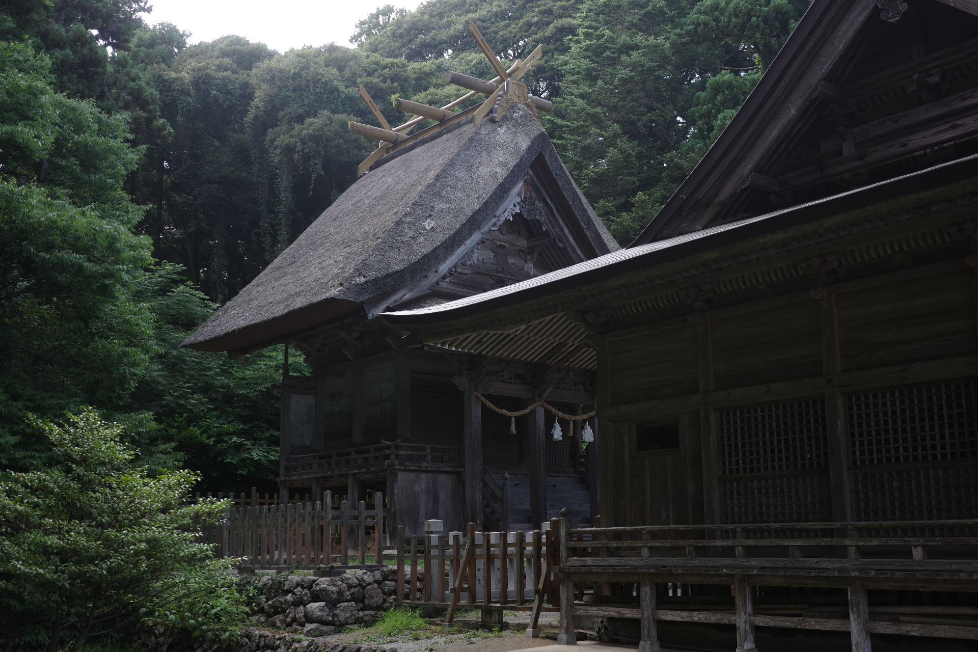 本殿の屋根は出雲大社の大社造り、柱の建て方などは伊勢神宮の神明造り。そして、ひさしの部分は春日大社の春日造りが取り入れられた、独自の「隠岐造り」と呼ばれています。こうした建築様式を見るのも楽しい。