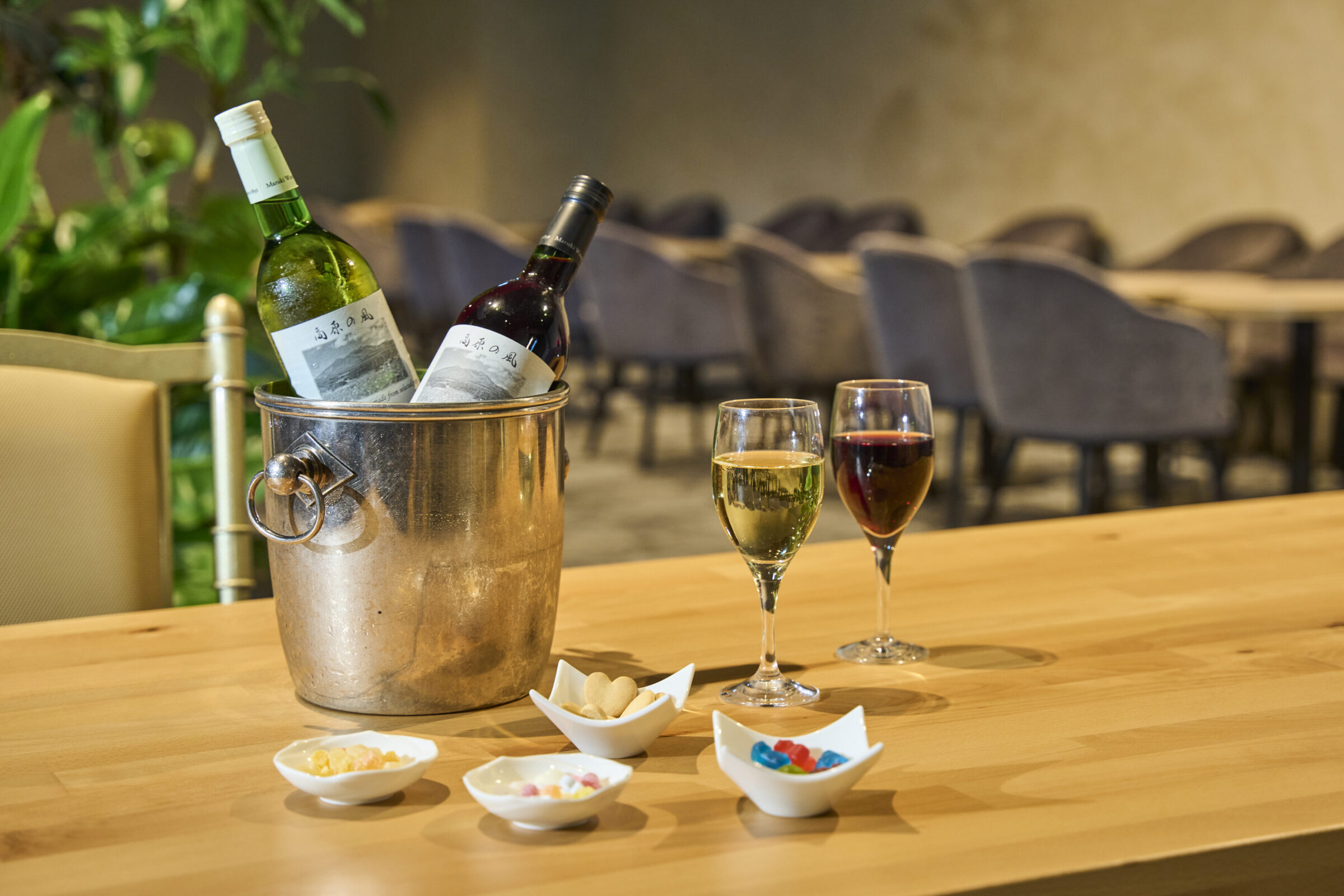 朝夕の食事もビュッフェスタイルで、地元の銘柄「信玄鶏」や「甲州ワインビーフ」を使った一品、郷土料理のほうとうなど、地のものを心ゆくまで楽しみたい。