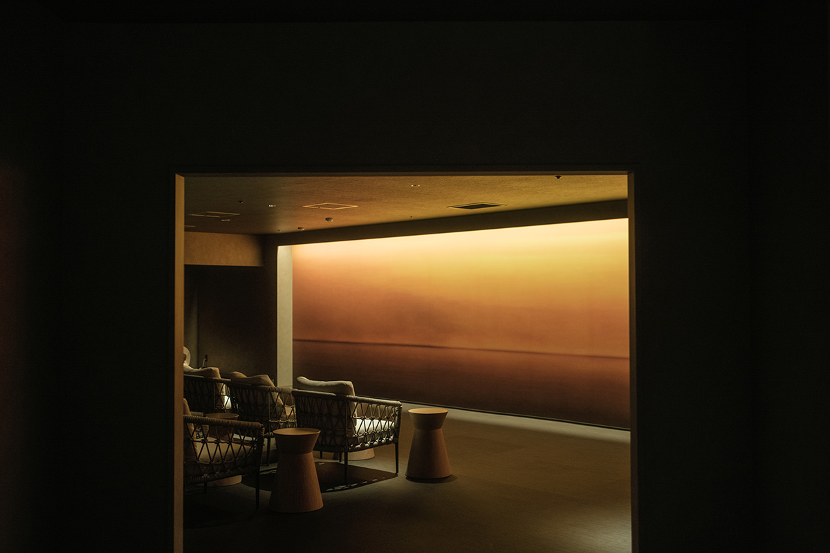 夕食の前後におすすめなのが、日の入り1時間前から90分間限定でオープンするKOHAKUテラス。西向きの広い屋上テラスに、大きな台座やベンチ、穏やかな天候の日はクッションもスタンバイ。空を染め、鳴門海峡を琥珀色に染め上げながら瀬戸内海に沈む夕陽は圧巻の美しさ! 高台に立つホテルならではのパノラマビューの絶景を特設テラスで堪能して。