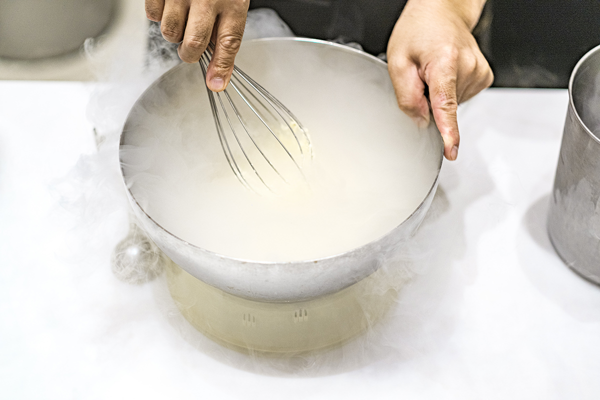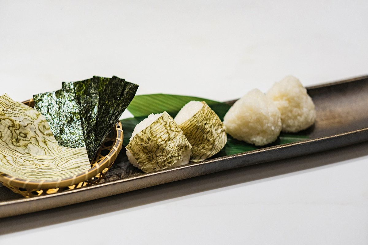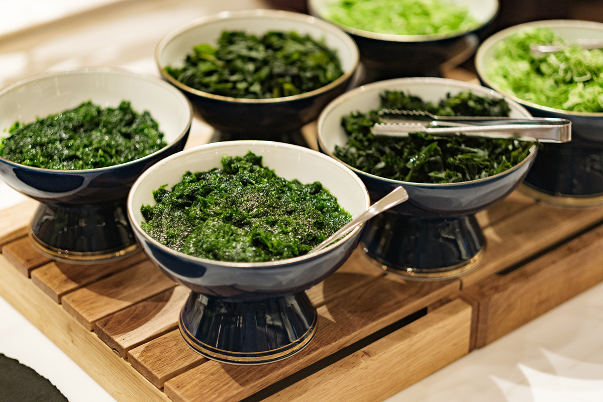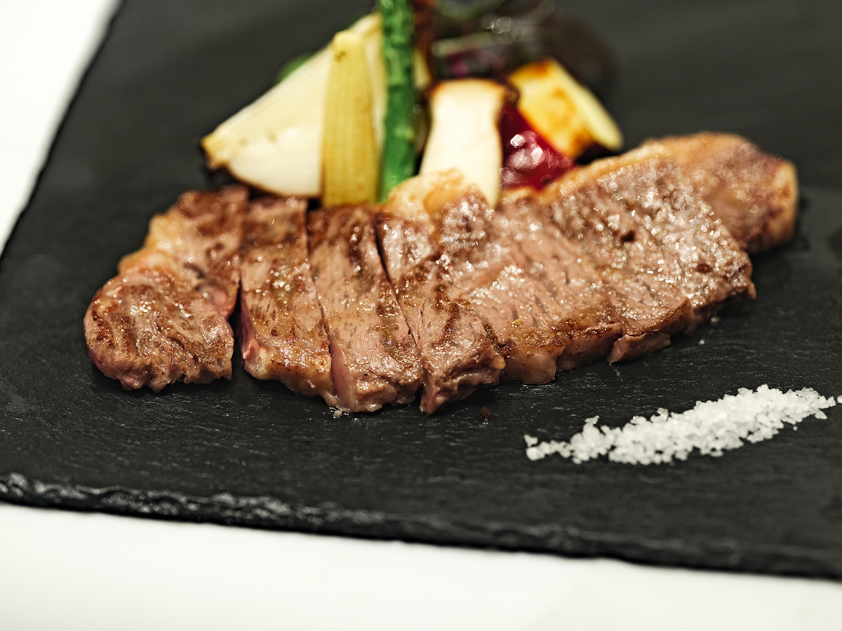 淡路牛のステーキ、近海で獲れた魚の塩焼き、釜炊きごはんの塩むすびに、塩と淡路島牛乳を合わせ目の前で仕上げるアイスクリーム。淡路島の食材を贅沢に使いながら塩の美味や食感を堪能できる4品に加えて、ビュッフェに並ぶお料理に「自凝雫塩」を合わせて味わうのももちろんOK。