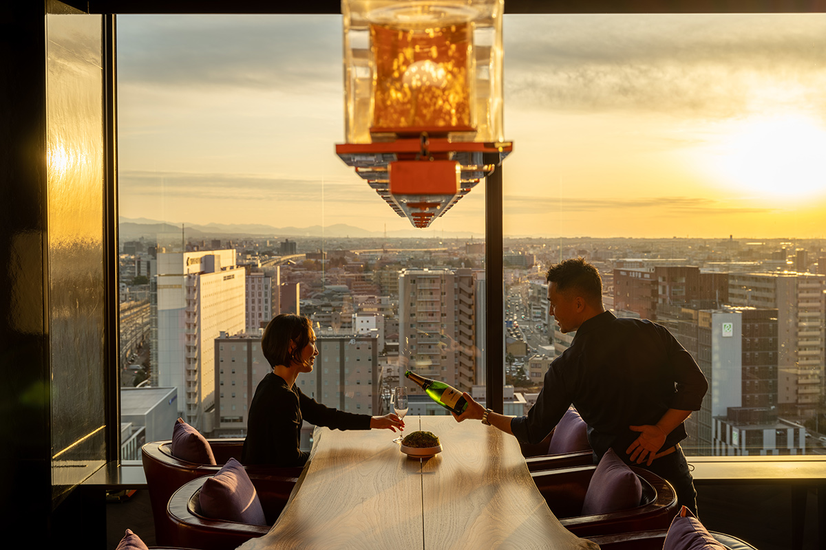 また、最上階のルーフテラス バーでぜひ楽しんでほしいのは、能登のトマトジュースや金沢の醤油蔵の醤油、加賀棒茶など、石川県に由来する素材を使用したユニークなカクテル。地元出身のバーテンダーが「能登を応援したい」と開発したオリジナルカクテルもあり、ここでしか出合えないメニューも、またアートのひとつかもしれない。