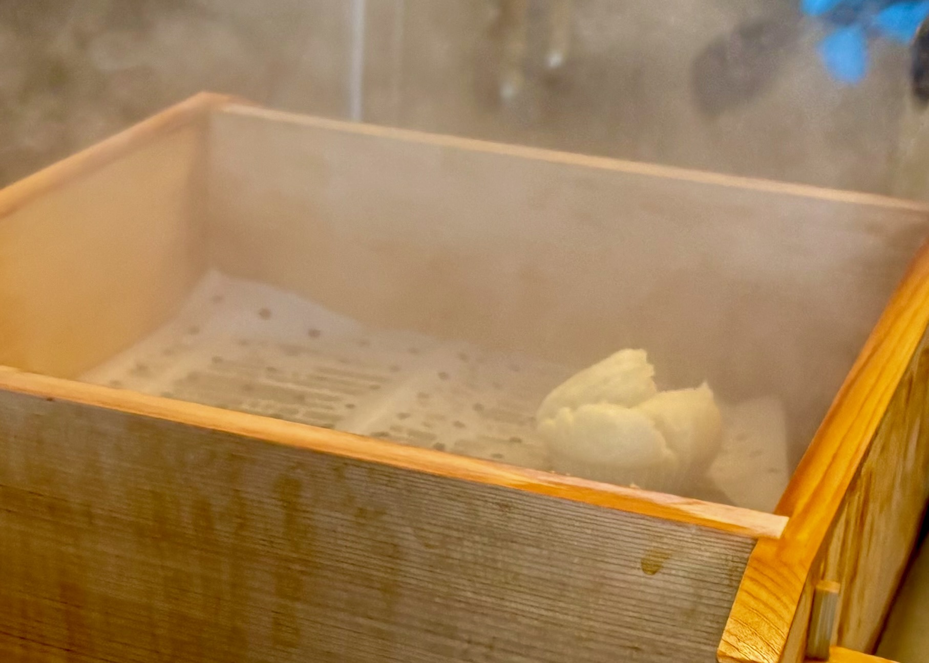 もともと〈伊豆本店〉の蔵開きの名物として愛されていた酒まんじゅうを、現代の感覚にあわせて再構築。これを目当てに訪れたくなるおいしさだ。