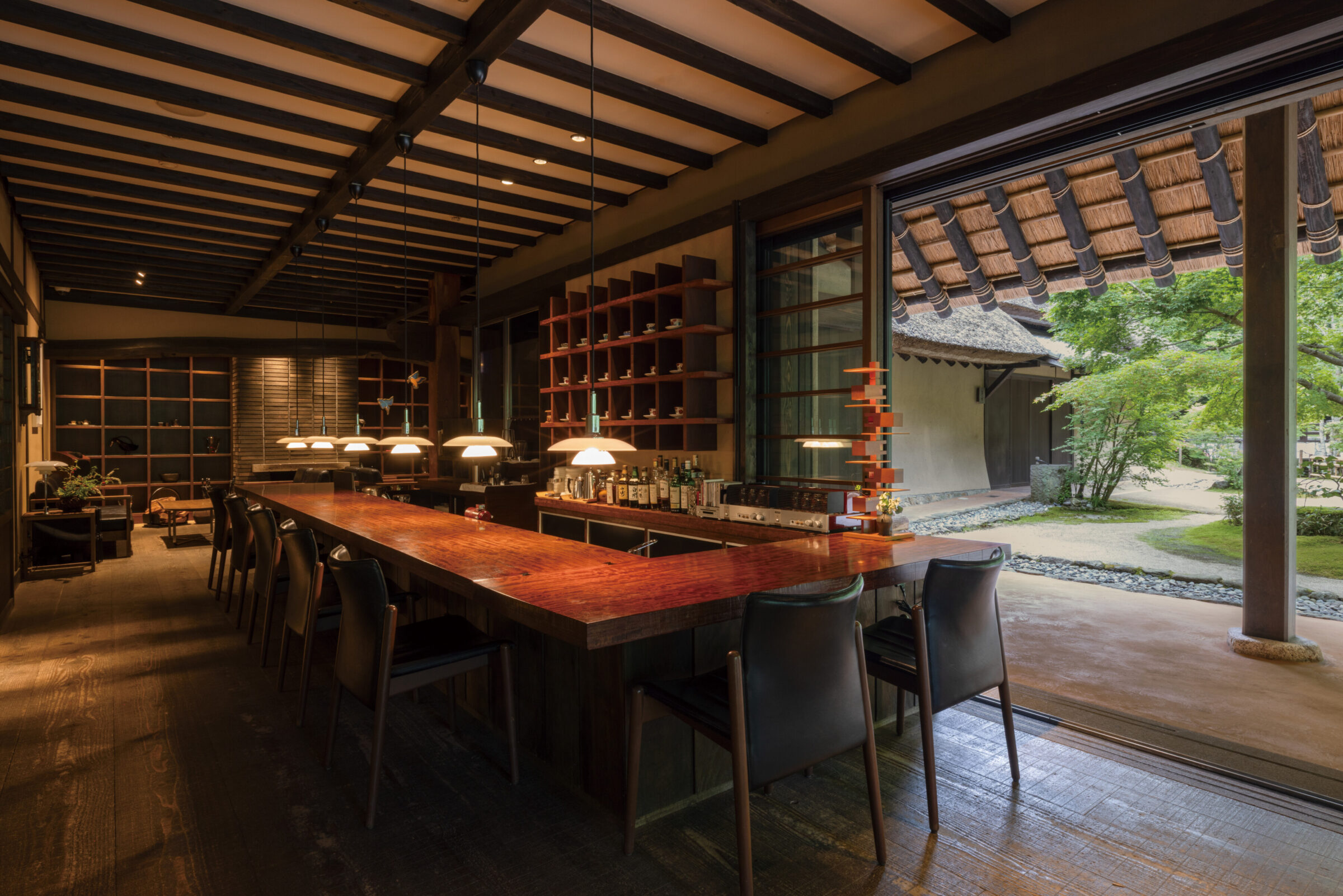 ここでまず目を奪われるのが、2025年に20年ぶりの葺き替えを終えたばかりの壮大な茅葺き屋根。西日本最大級とも称されるこの屋根は、創業時にも携わった御年89歳の棟梁を中心に、全国から集まった職人の手仕事によって黄金色の輝きを取り戻した。