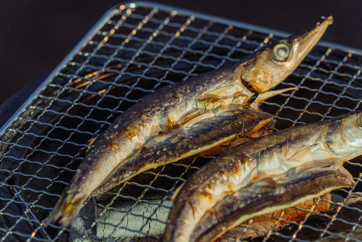 季節により獲れたての魚にさっと塩をして一夜干しにした自家製干物を七輪で炙ったり、春先には、黒潮にのって北上してくるブランド魚のケンケン鰹のお造りが、伊勢海老の代わりに登場するそう。