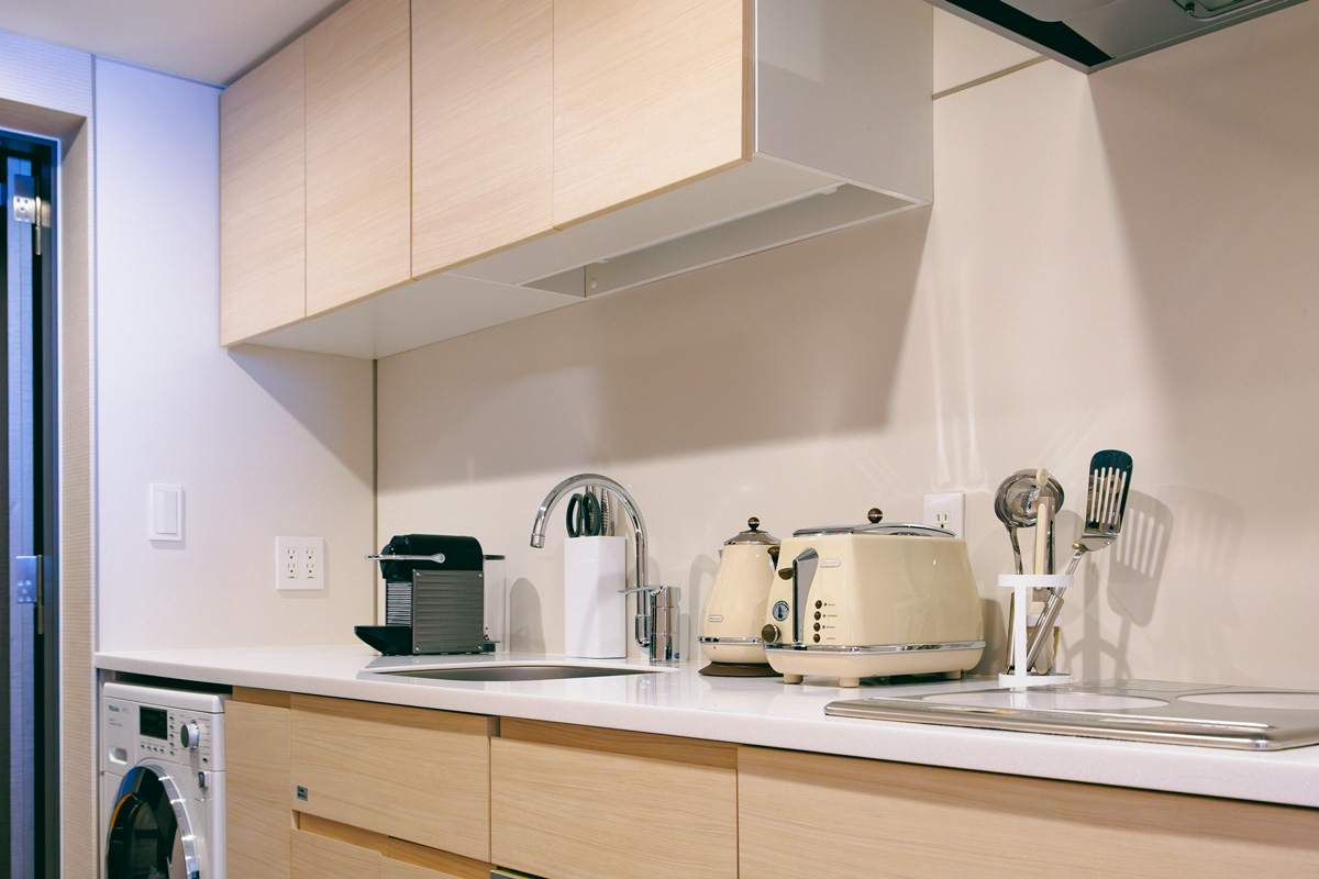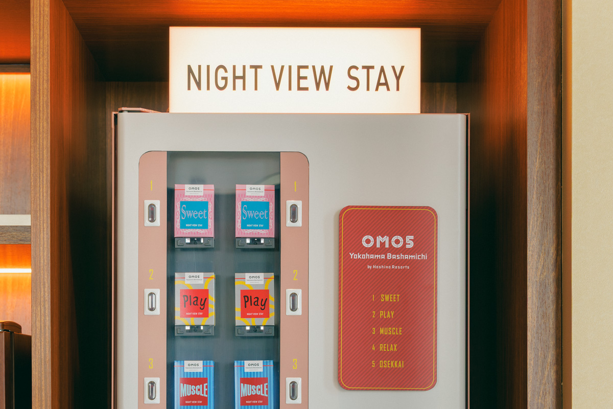 全室にキッチンと洗濯乾燥機が付いており、連泊して横浜を満喫したい派にぴったり。フロントにある「夜景じかん自販機」(宿泊者は1回無料)は、部屋での夜景観賞を充実させるユニークなアイデアが箱の中に!