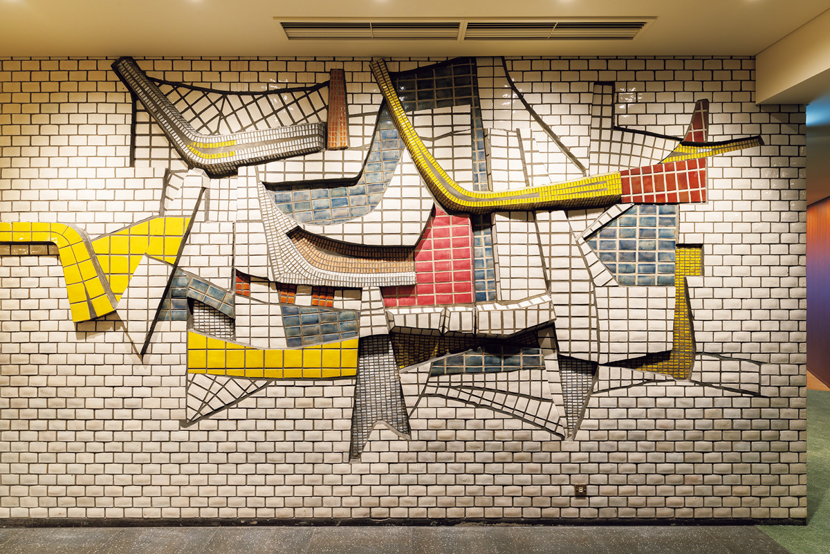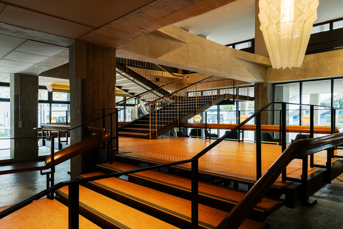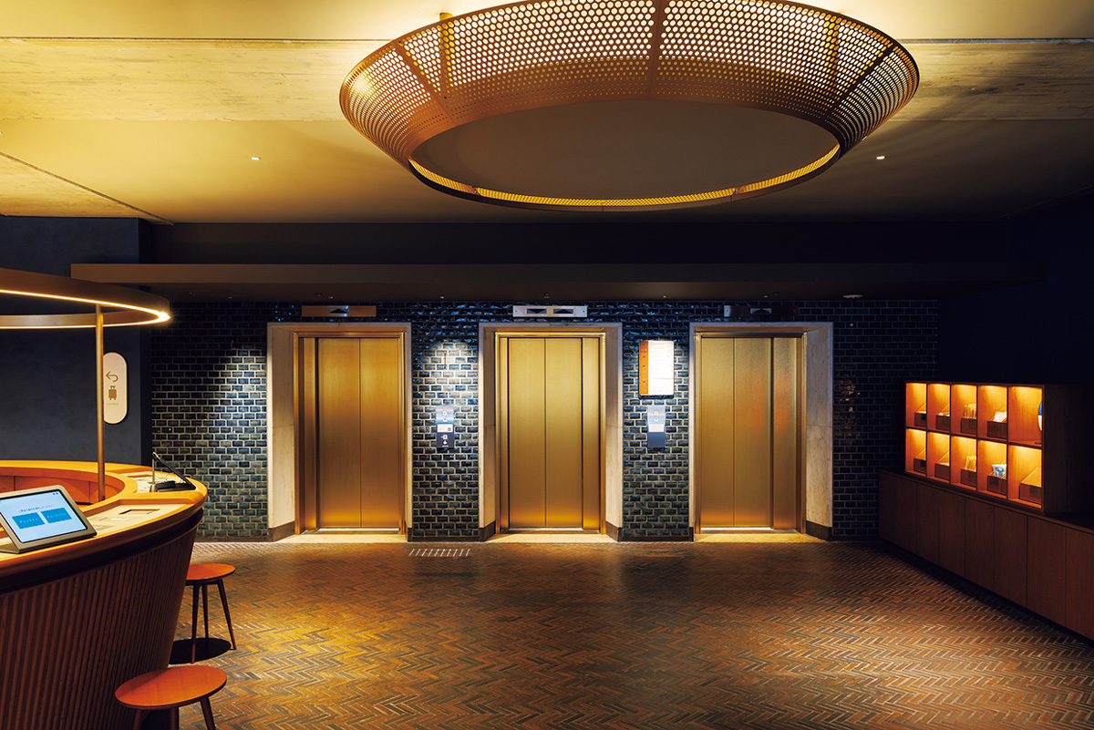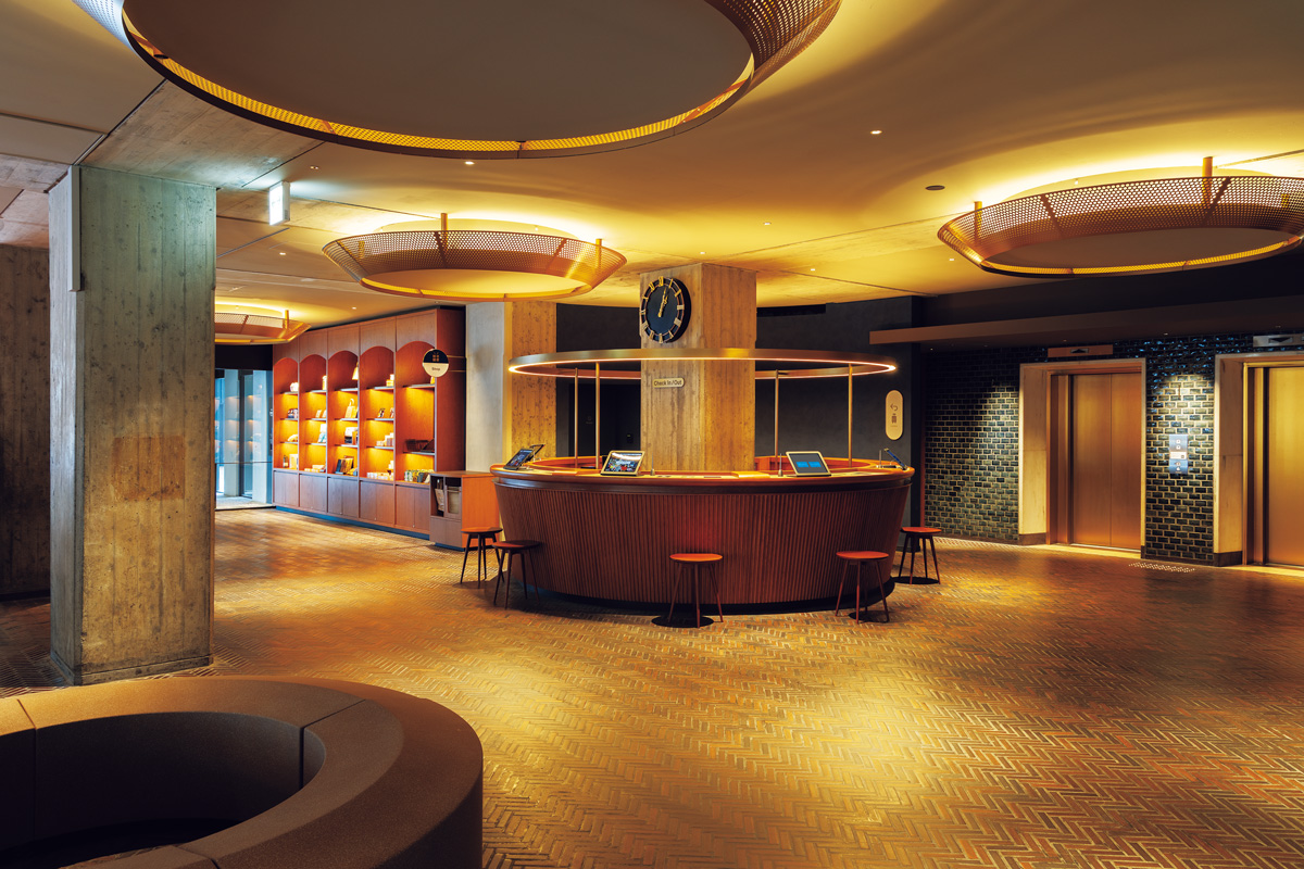 今春、関内エリアで最もホットなニュースが、大規模複合街区〈BASEGATE横浜関内〉のオープン。その一角に誕生したのが〈OMO7横浜〉だ。日本の近代建築を支えた建築家・村野藤吾氏設計の旧横浜市庁舎行政棟を活用したホテルで、格子状のフレームとレンガタイルの外観は当時のまま変わらない姿を残す。旧市庁舎の市民広間にあった大階段はロビーに移設・再現され、吹き抜けの1階と2階をつなぐホテルらしい空間を構成し、ロビーフロア天井の照明や椅子など、歴史を継承しつつ新たに工夫されたデザインなども随所に見られる。