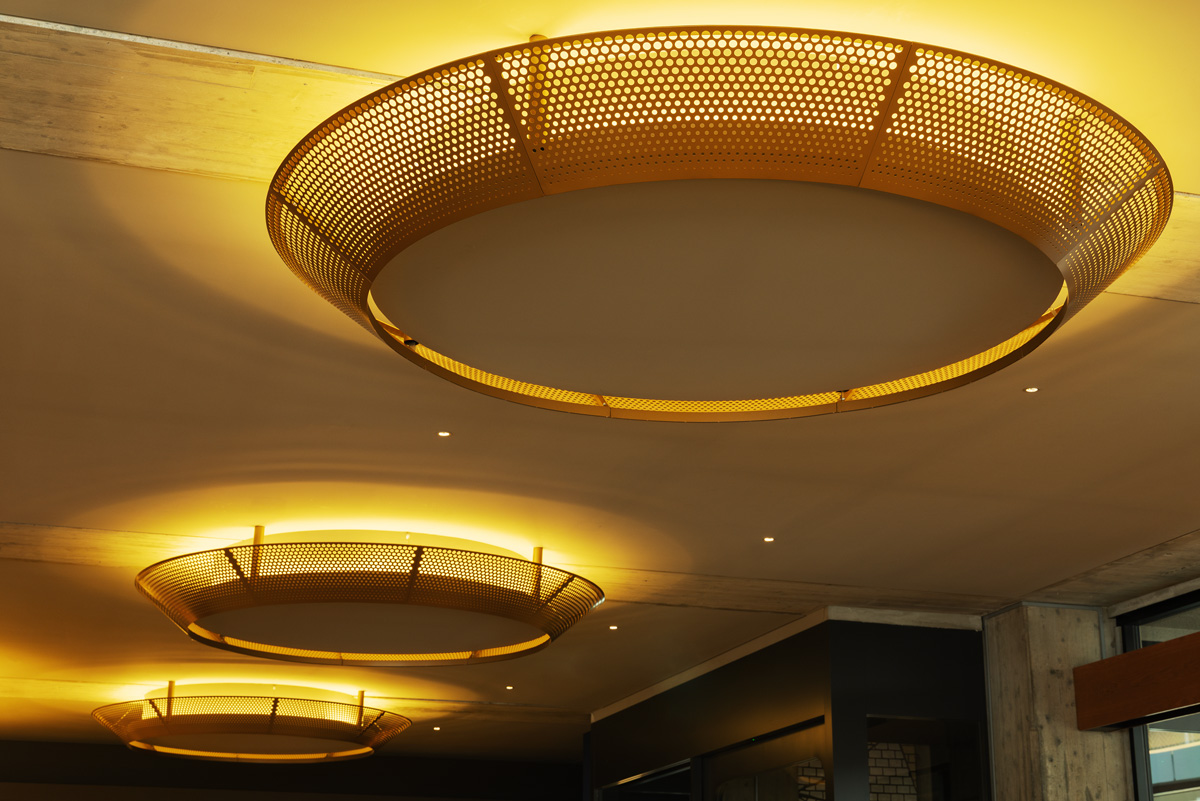 旧横浜市庁舎行政棟の意匠を継承し再生しているほか、ホテルに合う素材を用いてリデザインするなど、新旧融合が各所に見られる。