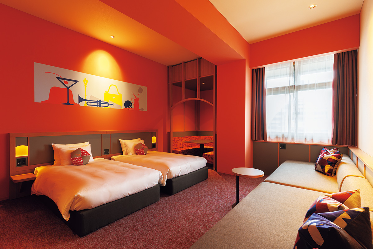 全276室の客室は、庁舎内で使用されていた、青・赤・緑のテーマカラーを採用した全9タイプ。利用する人数やシチュエーションによりタイプを選べる。